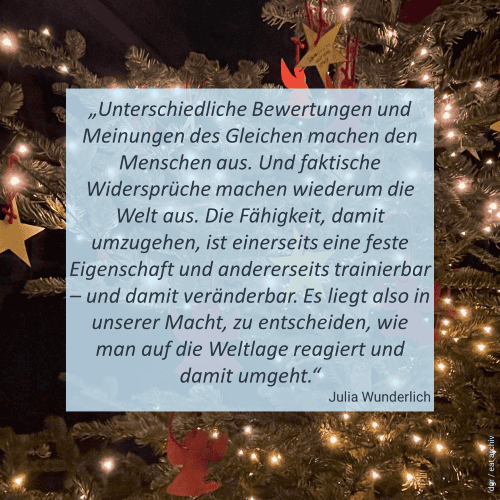 In unserem Adventskalender veröffentlichen wir vom 1. bis 24. Dezember jeden Tag ein Zitat aus unserem Akademiejahr 2025. Das tagesaktuelle “Türchen” finden Sie auf unserem Instagram – und Facebook -Kanal sowie in dieser Bildergalerie.