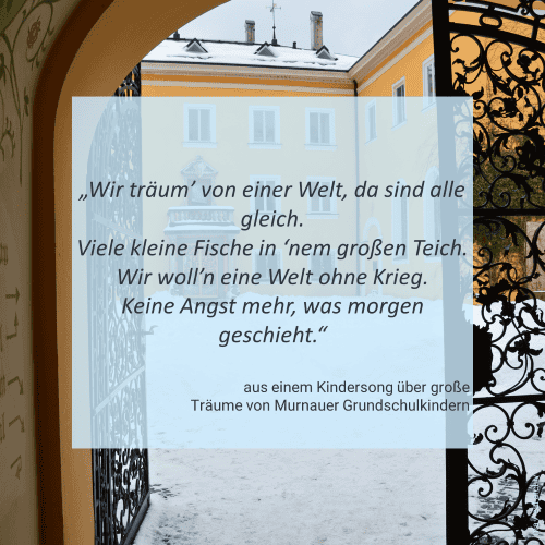 Aus dem politischen Kindersong, der im Sommer 2025 in der Grundschule Murnau in Kooperation mit dem Jungen Forum der Evangelischen Akademie Tutzing entstand.