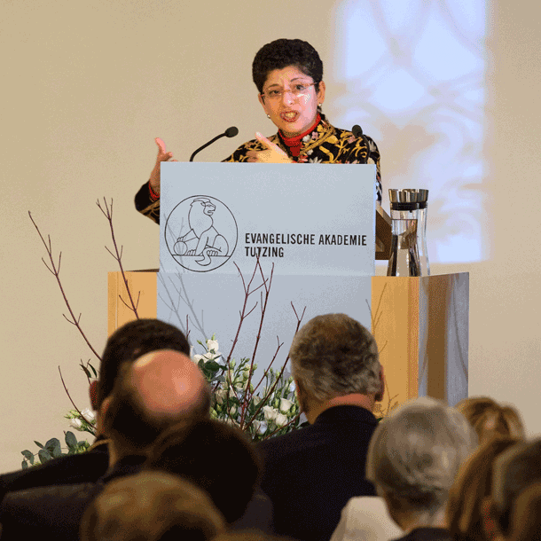 Vor etwa 350 Gästen hat die Generalsekretärin der internationalen Nichtregierungsorganisation „Religions For Peace“ Azza Karam über die „friedenstiftende Kraft der Religionen“ gesprochen – und dabei eine genaue Analyse von Potenzial und Risiken geliefert. Sie bezeichnete Religionen als „das zweischneidige Schwert schlechthin“.