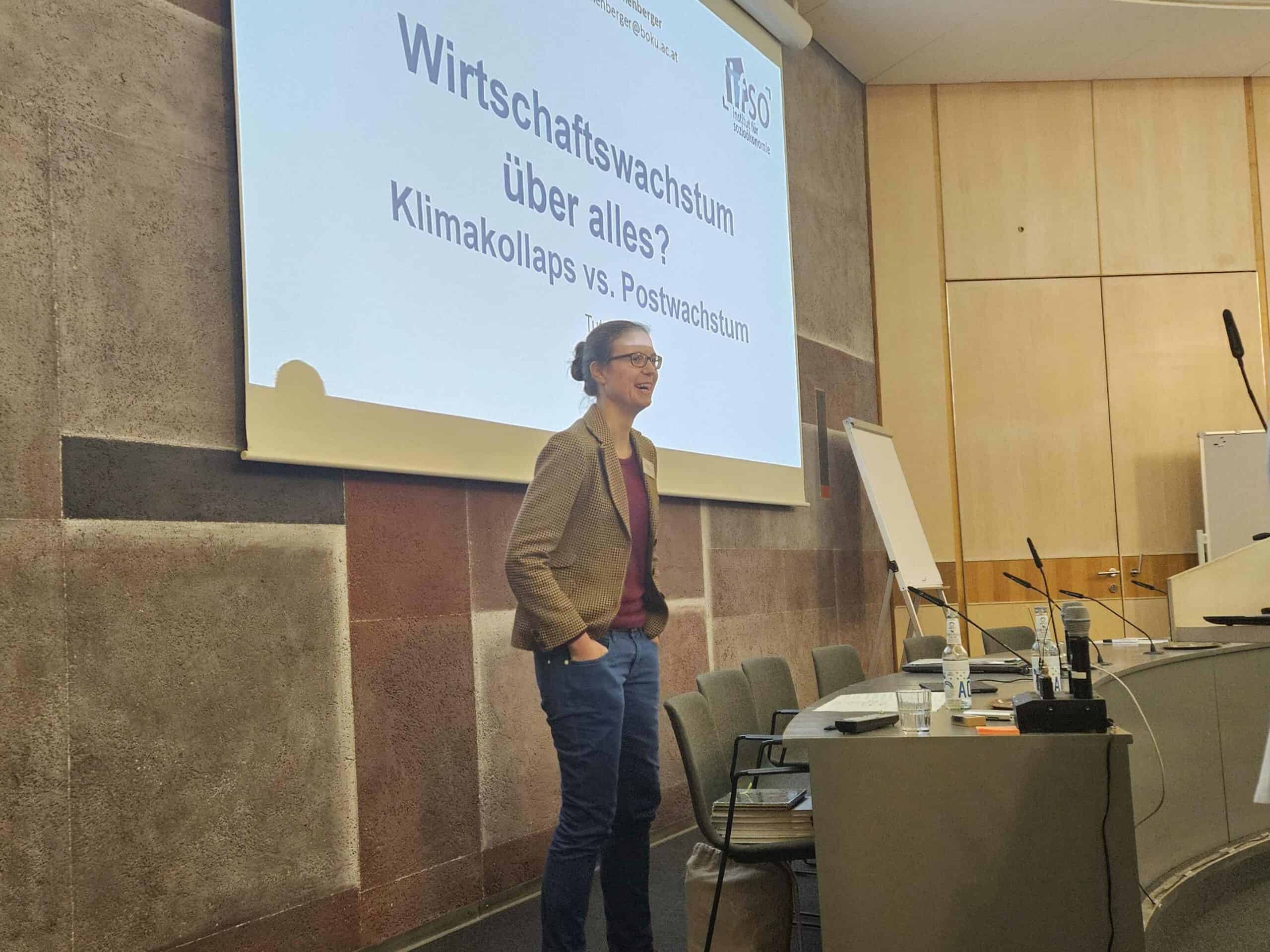 Der im Publikum vielleicht kontroverseste Diskurs war am Samstagabend geboten: Brauchen wir endloses Wirtschaftswachstum? Dr. Katharina Bohnenberger (Institut für Soziale Ökologie der Universität für Bodenkultur Wien) skizzierte eine Debatte, die weit über übliche Klima-Diskussionen hinausging. Die Ausgangslage ist paradox: Städte wie San Francisco oder Mumbai leiden unter Extremwetterereignissen. Gleichzeitig profitiert wiederum nur ein kleiner Teil der Weltbevölkerung wirklich vom globalen Wirtschaftswachstum. Die einfache Antwort “China ist schuld” treffe nicht zu, so Dr. Bohnenberger. Das Problem sei systemischer Natur. Das oft genannte Zauberwort heißt “Entkopplung”. Das beinhalte die Hoffnung, dass Wirtschaftswachstum und Umweltverbrauch voneinander getrennt werden können. Doch basierend auf dem wissenschaftlichen Sachstand zeigte sich Dr. Bohnenberger skeptisch: Diese Entkopplung müsse nicht nur temporär, sondern permanent und hinreichend stark funktionieren. Dafür gibt es aktuell keine überzeugenden empirischen Belege. Das Gegenmodell klang fast philosophisch: eine Wirtschaft des “Genug”. “Die Idee von Genug ist, dass alle genug haben, nicht zu viel und nicht zu wenig”, fasste Dr. Bohnenberger ihre Vision zusammen. Ein ungewohnter Gedanke in der aktuellen Wachstumsgesellschaft.
